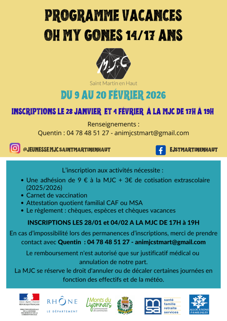 À venir pour ces prochaines vacances au secteur jeunes : stages, sorties, découvertes, rencontres inter-MJC, jeux, cuisine, et des veillées bien sûr !