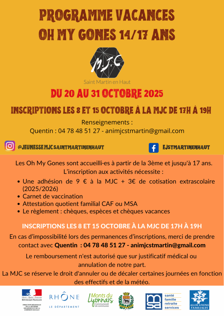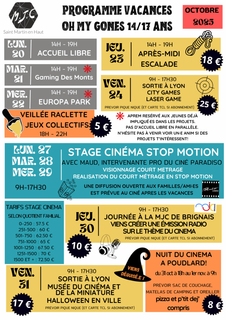 Programme vacances octobre « Oh My Gones » 14-17 ans