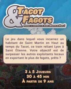 Ce jeu vous plongera dans le Saint Martin en Haut du début du XXème siècle, à l’époque du Tacot et du commerce des fagots, un jeu qui met en valeur notre histoire et notre patrimoine local.